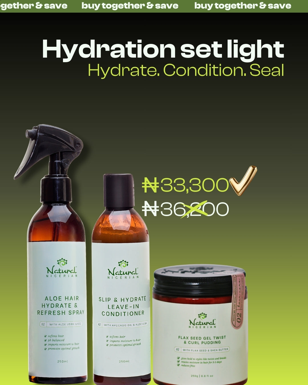 We put together a bundle of essential products to keep your hair hydrated and mositurized. Use on wash day and in between to keep hair soft and moisturised.
